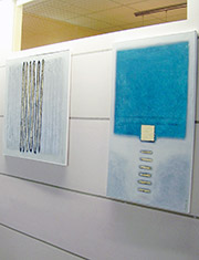 Über 40 Bilder, Acrylarbeiten und Mosaikarbeiten, warten auf den Besucher. Gesellschaftliche und religiöse Themen arbeitet mein Bruder Werner in seinen zum Teil recht großformatigen farbstarken Mosaiken auf, während ich diesmal sehr helle, flächigweiße reduzierte Bilder zeige. Zu meinen Bildern gibt es jeweils kurze Textzeilen, die ein wenig zum Bild und der Intention hinführen.