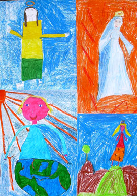 Ausgehend von diesen Fragen haben meine Schülerinnen und Schüler aus der 3. Klasse Volksschule in Ilz ihr Marienbild gemalt.